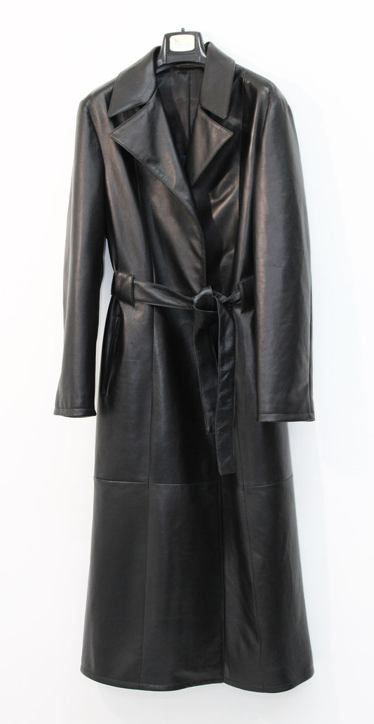 Women's Black Leather Trench Coat - Made in Italy Artisan Collection by Ferdinando Patermo
